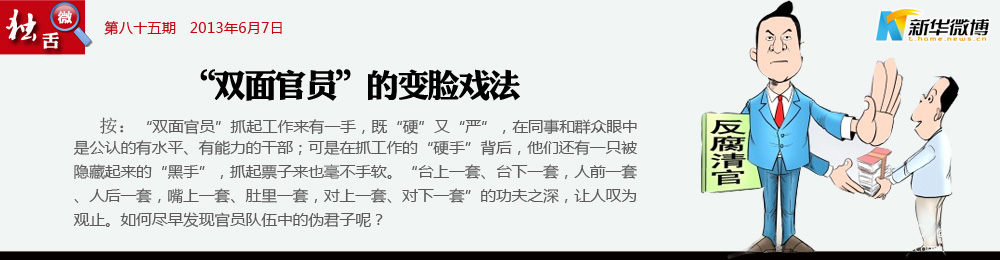 雙面官員實(shí)屬高危人群 臺(tái)上大唱反腐高調(diào),臺(tái)下暗自權(quán)力尋租,這種雙面人生過(guò)久了,不知道所謂的“反腐清官”們會(huì)不會(huì)有精神分裂的危險(xiǎn)?近年來(lái)官員抑郁自殺事件頻發(fā),想來(lái)這種精神壓力可能相當(dāng)不小。從這點(diǎn)來(lái)看,雙面官員算得上心理高危人群。體制不改革,此類偽君子就是割掉的韭菜!