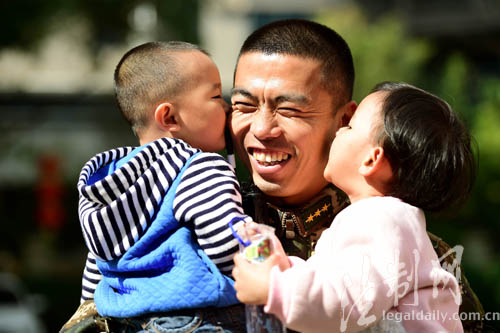 ????中隊(duì)長(zhǎng)曾云強(qiáng)回顧軍嫂在隊(duì)期間,幽默地說:兩個(gè)大人相當(dāng)于給部隊(duì)增加了兩名后勤尖兵,營(yíng)區(qū)更干凈了,飯菜更美味了;兩個(gè)寶寶更像給官兵增加了兩顆“開心果”,14個(gè)小時(shí)高負(fù)荷勤務(wù)歸來,寶寶一聲“叔叔辛苦了!”,誰都忍不住上前抱一抱、逗一逗、鬧一鬧,其樂融融。
