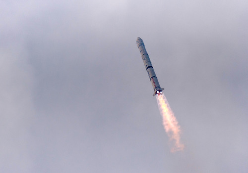 ????搭載風(fēng)云二號(hào)08星的運(yùn)載火箭在西昌衛(wèi)星發(fā)射中心點(diǎn)火發(fā)射(2014年12月31日攝)。新華社發(fā)(郭文彬 攝)