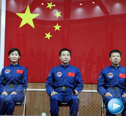 執(zhí)行天宮一號與神舟九號載人交會對接任務航天員乘組與記者見面