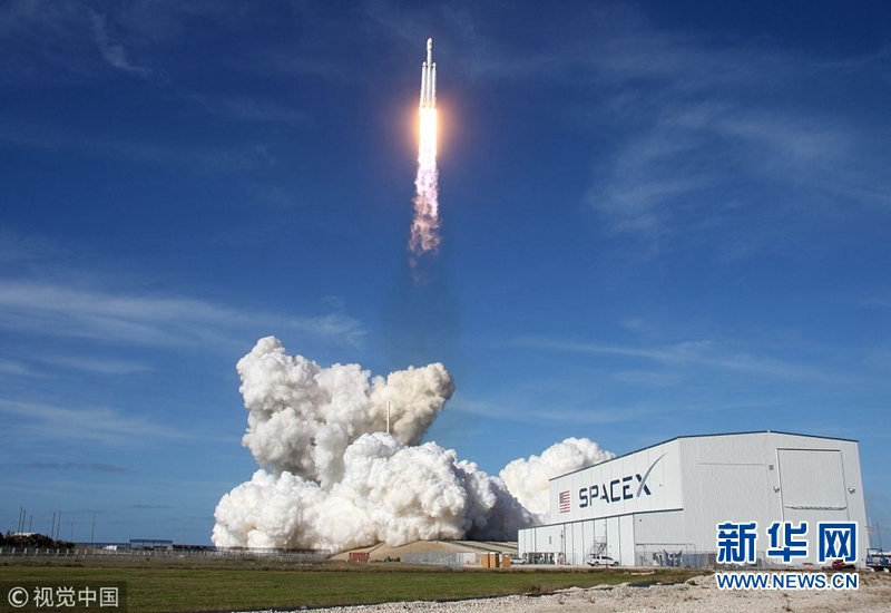 當(dāng)?shù)貢r間2018年2月6日,美國佛州卡納維拉爾角,美國重型運載火箭“獵鷹重型”6日攜帶一輛特斯拉跑車發(fā)射升空。(圖片來源:視覺中國)